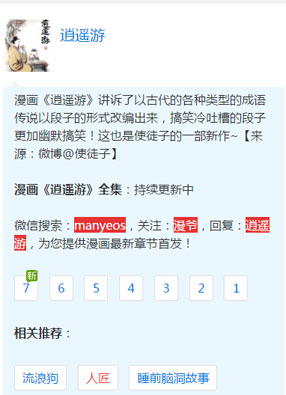 2025-08-17 00:35 开始阅读 微信阅读 简介:《逍遥游》漫画是使徒子的最新力作,将古代各式各样的典故、成语、传说,改用现代网络段子和搞笑冷吐槽的方式将其描述出来,更加幽默易懂。让人开怀大笑的同时学习了其知识,寓教于乐 寓学于乐。